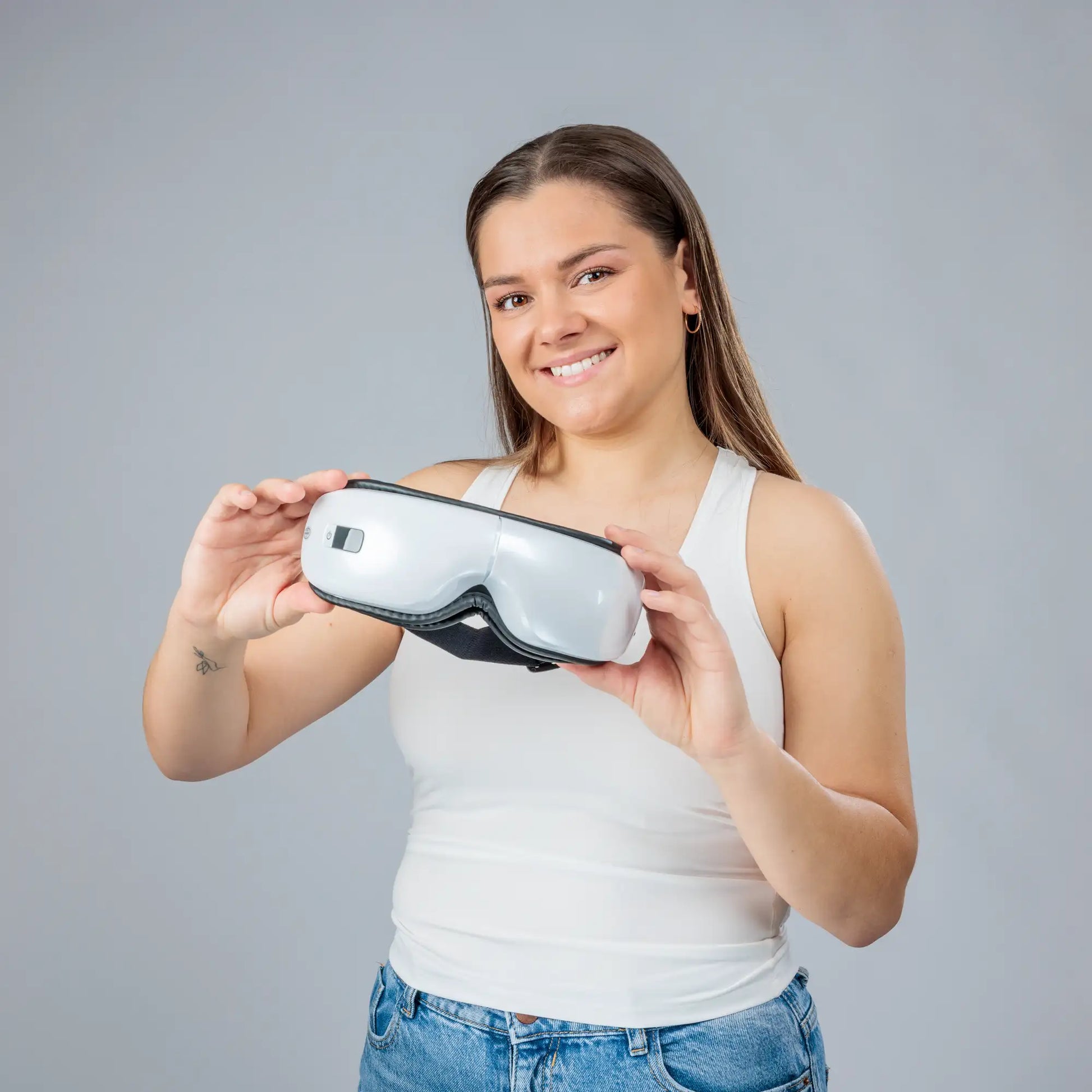 It uses a combination of air pressure, gentle vibration, heat, and music to relax the muscles around your eyes, relieve tension, and improve circulation.